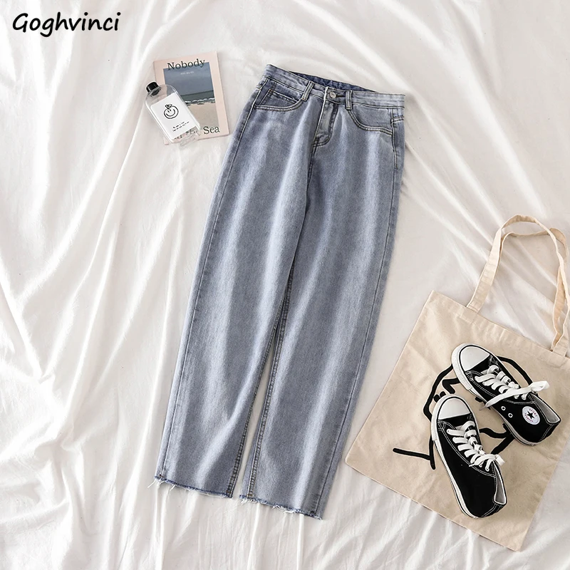 discount Trousers Women Retro Loose Ankle-length Zipper Fly High Waist Jeans Womens Korean Style New Fashion