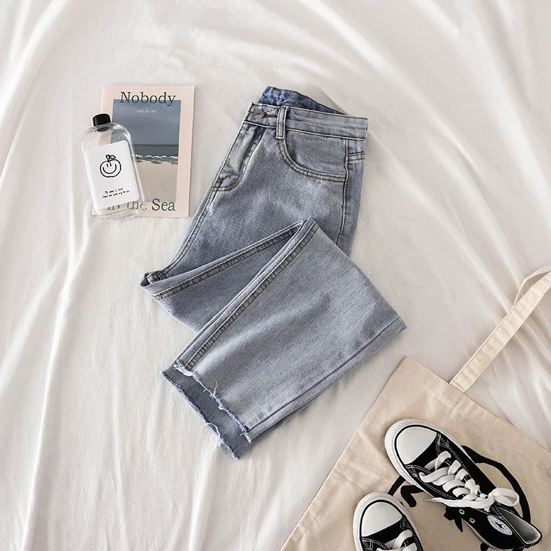Best Trousers Women Retro Loose Ankle-length Zipper Fly High Waist Jeans Womens Korean Style New Fashion