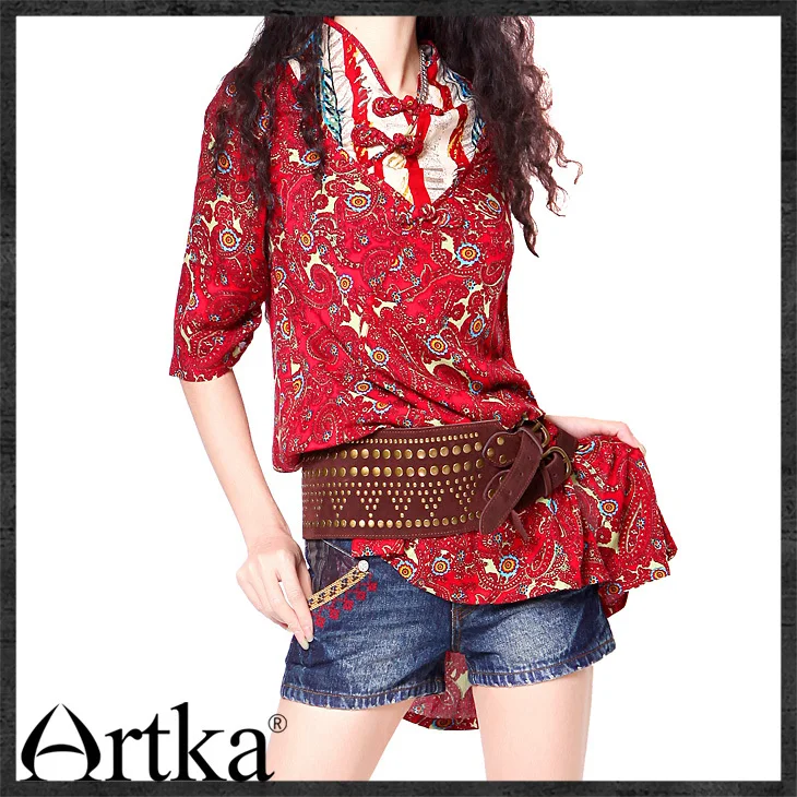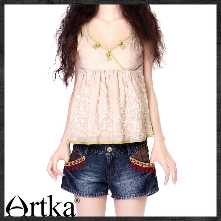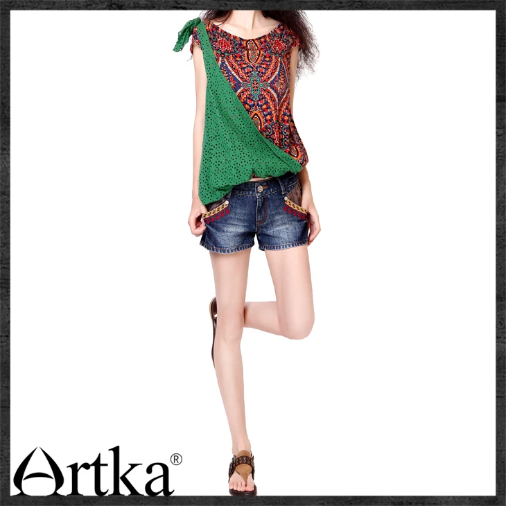 ARTKA Women's Retro Smart Handmade Pleats Back Pockets Abraded Whitewashed Hugging Cotton Denim Mini Pencil Skirt QN11422Q,ARTKA 2019 Summer Women 100% Cotton Shorts Folk-custom Style Vintage Female Slim Loose Casual Denim Shorts KN10290C, ARTKA 2019 Summer Women 100% Cotton Shorts Folk-custom Style Vintage Female Slim Loose Casual Denim Shorts KN10290C